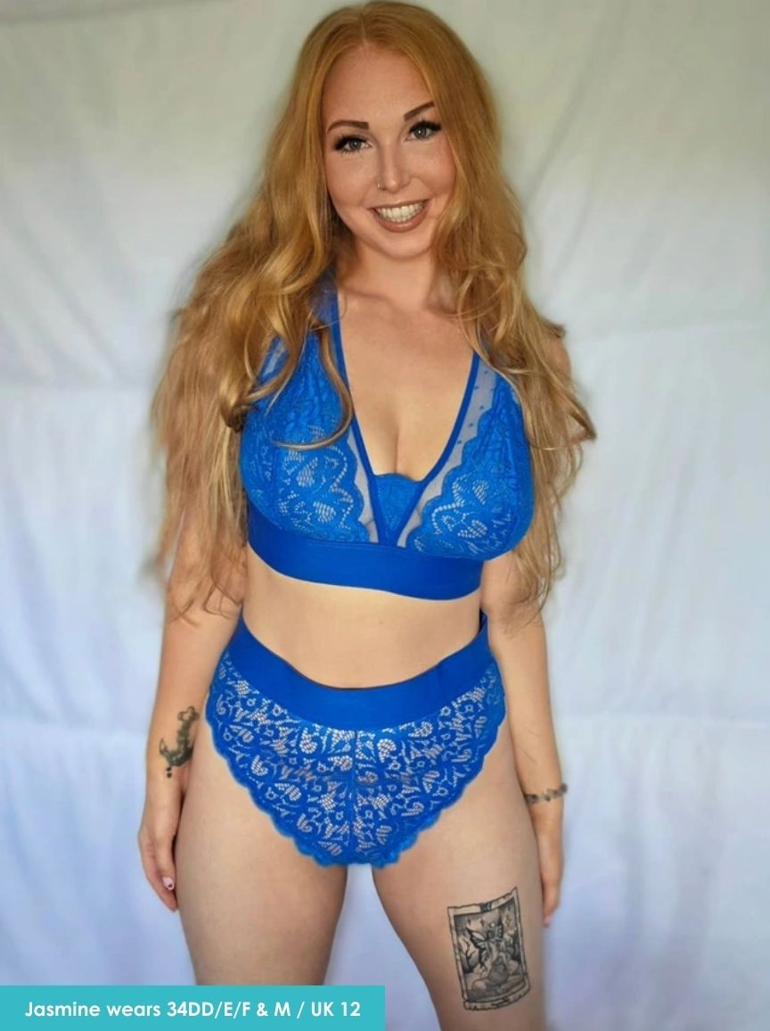 Such a stunning colour blue, amazing fit that accentuates my curves, and sexy lace. This set makes me feel amazing 🥰